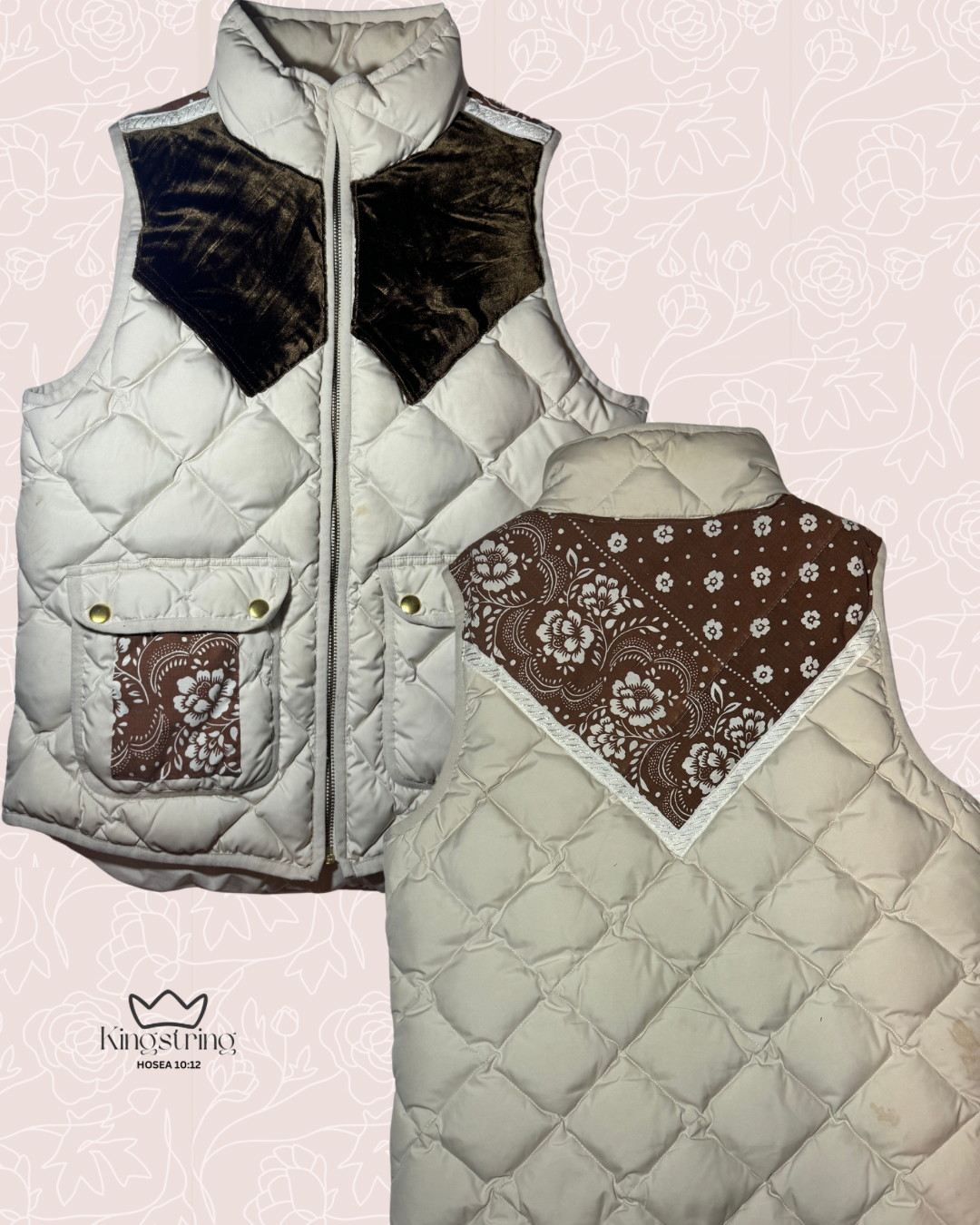 #443 Cream Brown Velvet Vintage Bandana